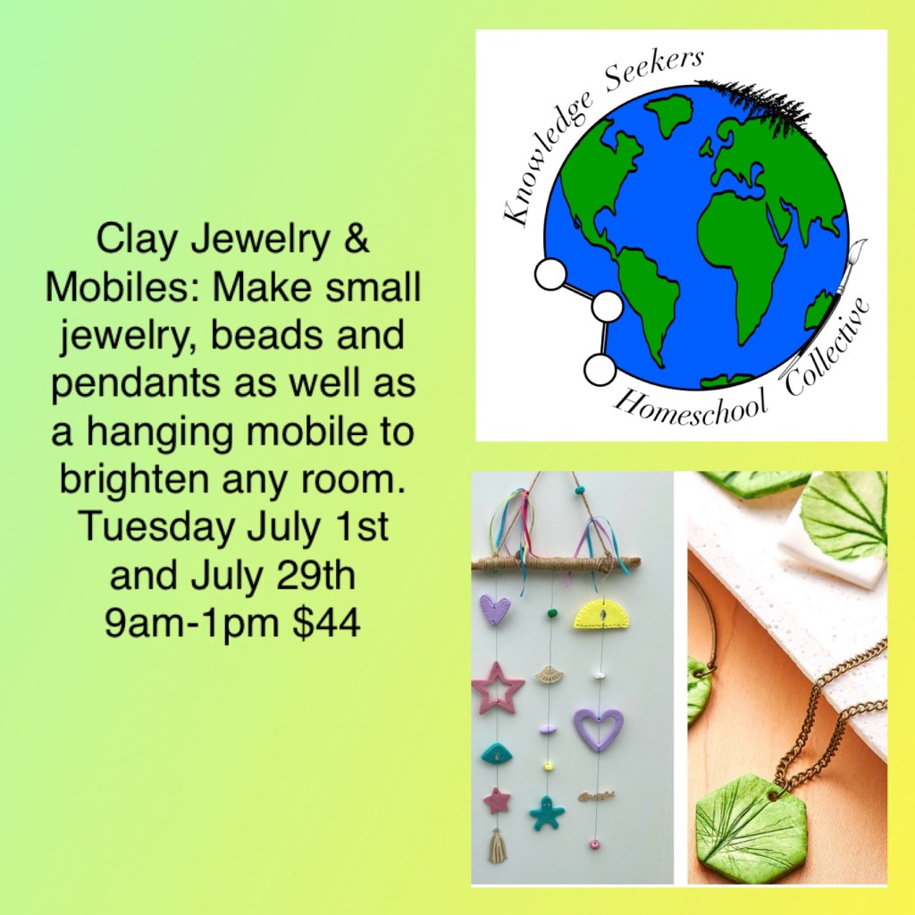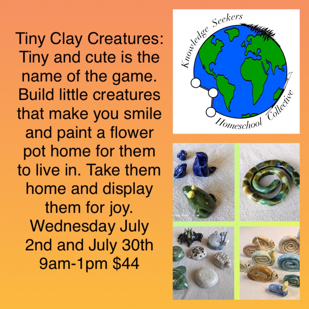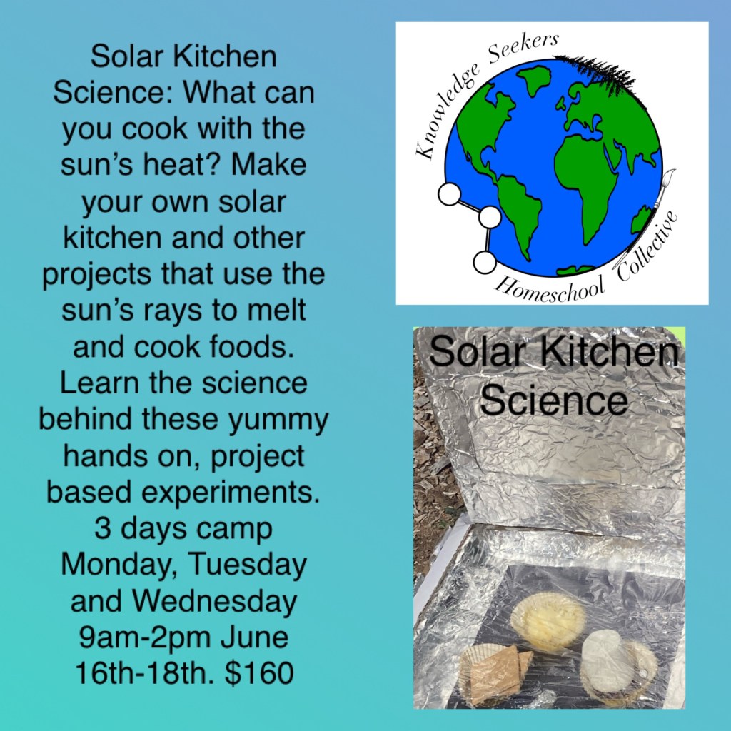 SUMMER CAMPS @ Knowledge Seekers: We have several camps happening this summer. Solar ovens, Art Around the World, and 4 Clay camps.
